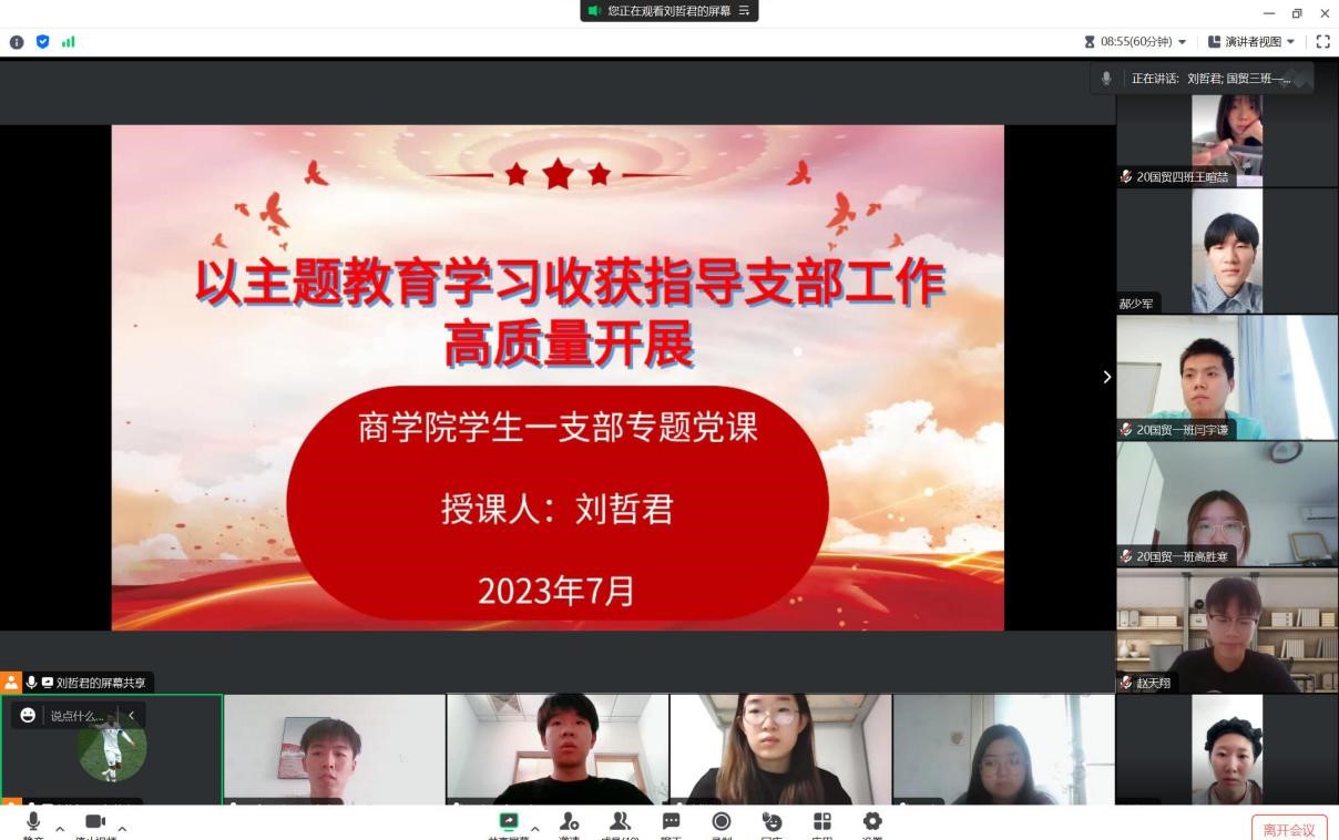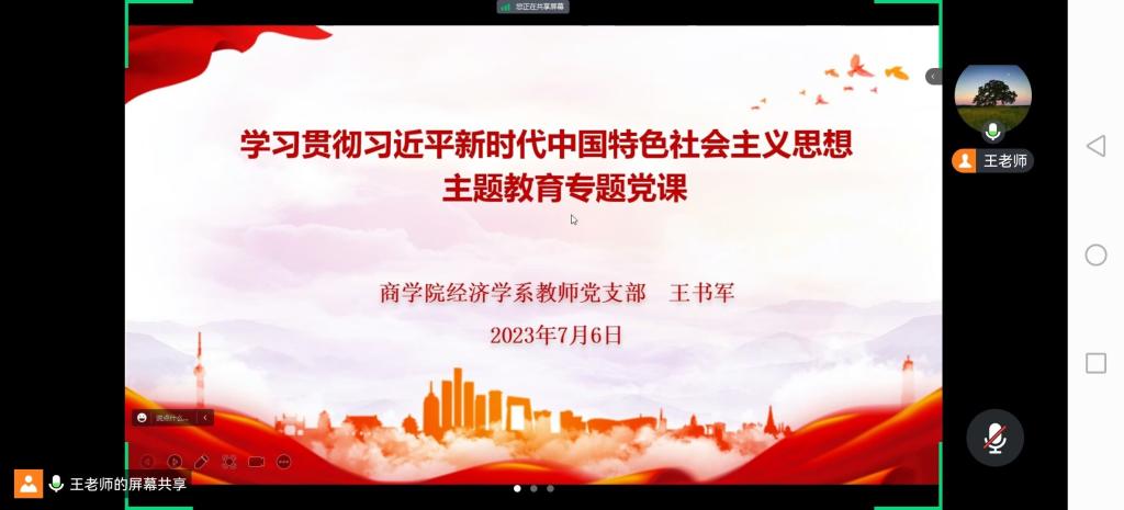 7月5日至7月9日,商学院领导班子成员和党支部书记分别讲授主题教育专题党课,学院全体党员和师生代表共计200余人次聆听了系列党课。