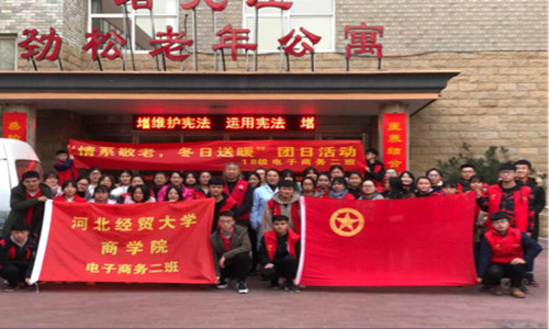 12月12日,商学院辅导员路荣老师率领2018级电商2班全体同学赴正定县塔元庄村劲松敬老院开展“情系敬老、冬日送暖”主题团日活动。
