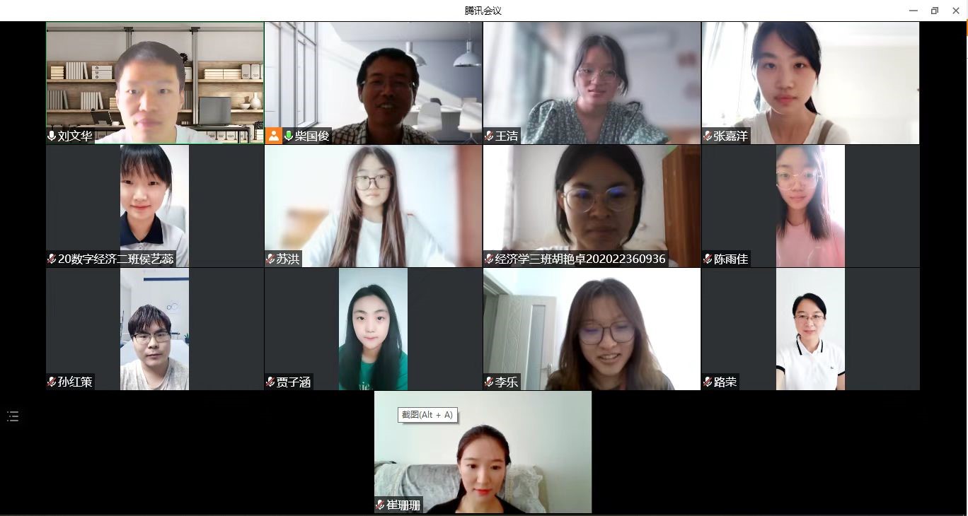 商学院团委书记路荣组织,商学院教授柴国俊和财税学院博士刘文华全程指导,商学院四位本科学生王洁、胡艳卓、侯艺蕊和张嘉洋现场参加,7位其余团队成员线上参与。