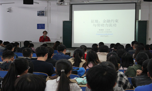 柴老师从城镇化进程中征地突出要地不要人,就业存在隐患,新型城镇化需要以人为本的现实背景出发,重点报告了征地对家庭外出就业的影响,指出征地的货币补偿缓解了农民的金融约束,使得失地农民外出就业可能性和就业距离增加。为了促进劳动力的流动,极有必要重视征地货币补偿政策的制定。柴老师的报告通俗易懂,思路清晰,内容丰富,且因报告触及到现实热点问题,还引发了师生们的热烈讨论,效果很好。