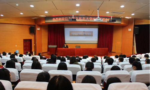 国际学术报告厅作题为“由高速转向中低速增长背景下的日本产业发展”的学术报告。报告会由商学院副院长戎素云主持,商学院220余名师生聆听。