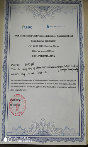 本次会议,不仅在学术方面与参会学者和高校教师共同分享交流,认真聆听和学习了教育、管理、社会科学等领域研究进程、主题和研究方法,并且体验到国际会议的学术精神和精髓,为今后撰写论文、国际会议投稿和英语汇报积累了知识和宝贵经验。
