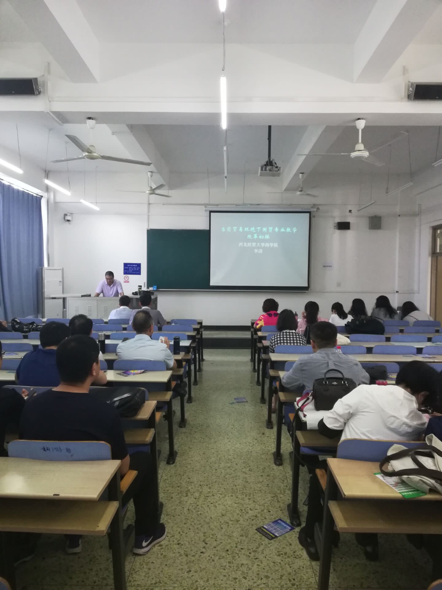 2019年9月23日下午,商学院于北三教B302举办以“当前贸易环境下国贸专业教学改革初探”为主题的教学沙龙活动,本次活动由副院长马书刚主持,约70名教师参加。