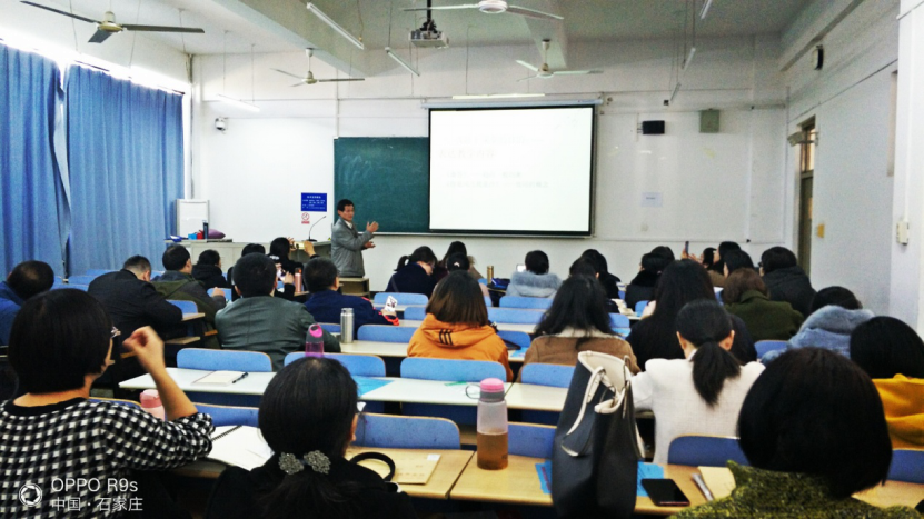 2019年11月18日下午由商学院主办的“放歌于课堂”主题教育沙龙活动在北三教B302召开,此次活动由商学院教务秘书丁立会老师主持,商学院经济学系主任张昌廷老师主讲,全院70余名教师参加。