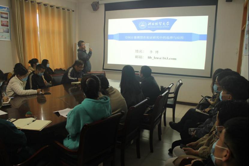 10月25日,商学院李博博士在学院西会议室做了题为“面板空间计量模型在实证研究选择与应用”的学术报告。报告由商学院副院长刘振滨主持。院内外30余名师生参加了本次报告会。