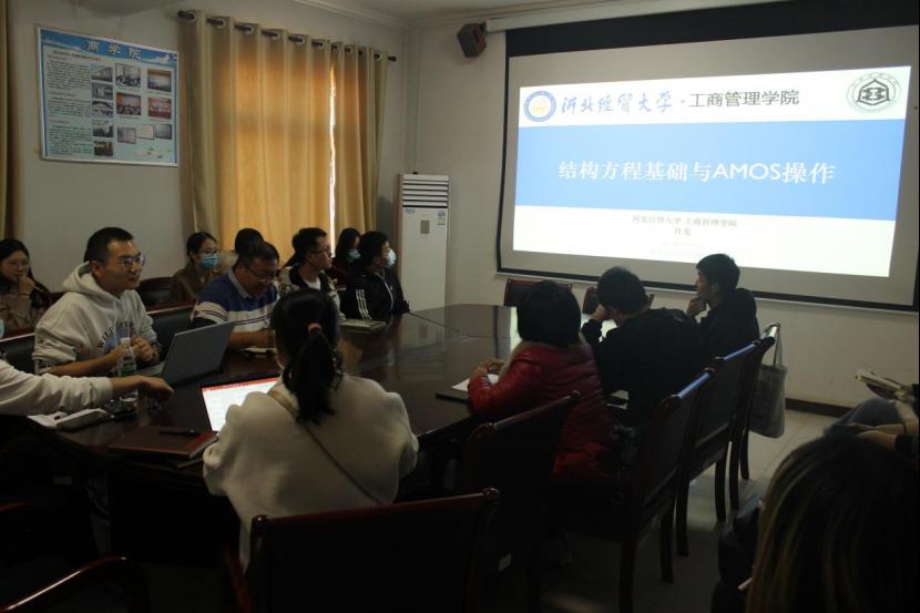 工商管理学院许龙博士于西会议室作了题为“结构方程基础与AMOS操作”的学术报告。全校30余名师生参加,报告由商学院副院长刘振滨主持。
