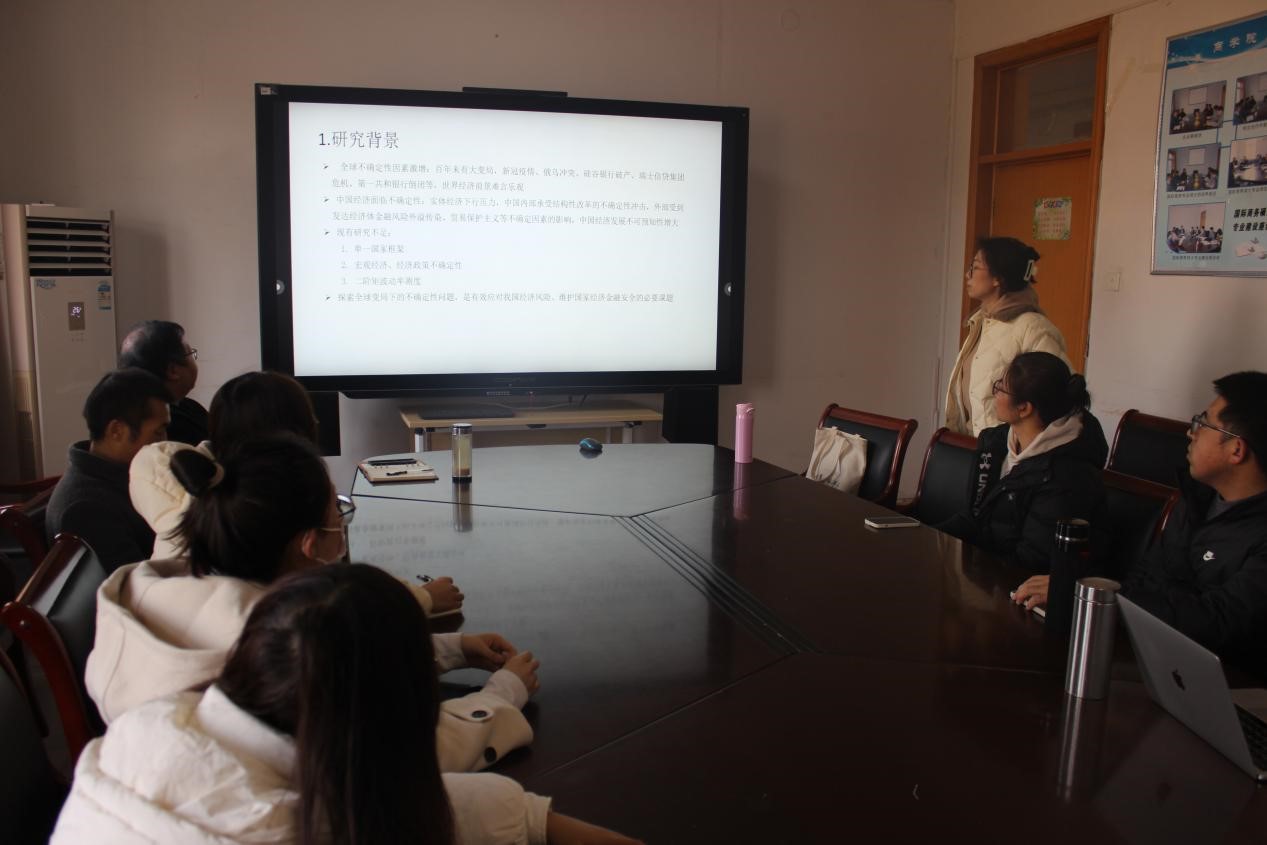 12月6日,商学院陈若愚博士于商学院西会议室作了题为“自全球金融不确定性测度:高阶矩视角”的学术报告。报告由商学院副院长刘振滨主持,学院30余名师生参加。