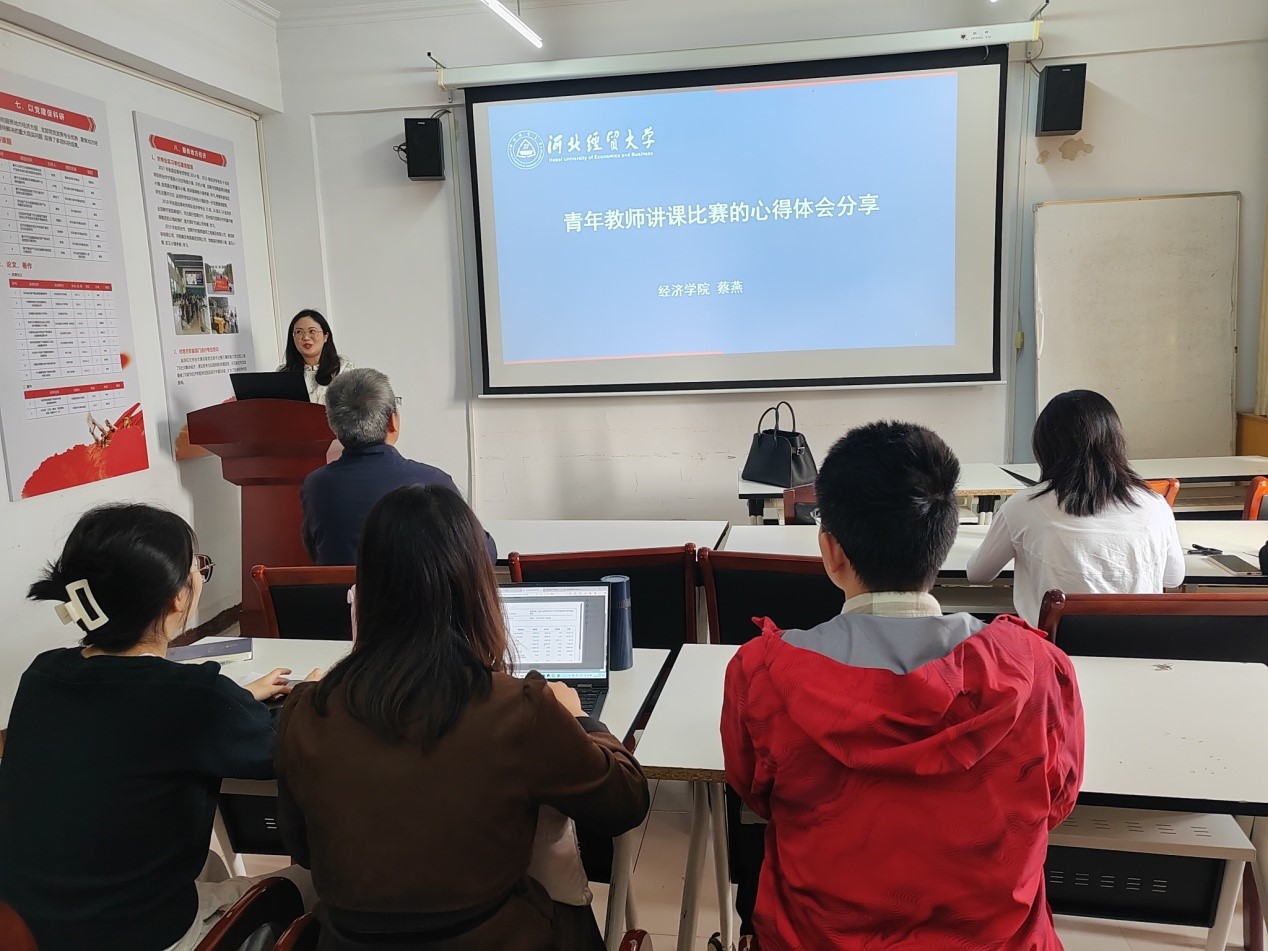在学院会议室举办了题为《青年教师讲课比赛的心得体会分享》的教学沙龙活动。沙龙活动由国际贸易系教师蔡燕主讲,教学副院长单海鹏主持,全院30余名青年教师参加。