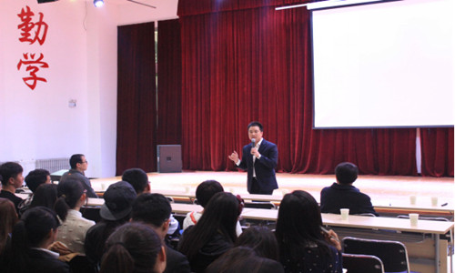 董爱民作开场致辞。王凤爽先生从自己大学生活讲起,与同学们分享了自己的学习和创业经历,并详细介绍了信贷通公司目前的主营业务、发展理念和今后的发展方向,对怀揣创业梦想的同学给予了帮助与鼓励。在现场提问环节中,王凤爽先生认真回答了同学们提出的问题,并鼓励大家来公司参观实习。最后,董爱民做总结发言,向学生们强调了踏实、自信的重要性,希望同学们能做好当下每一步,志存高远,勤于实践,勇敢追逐梦想。