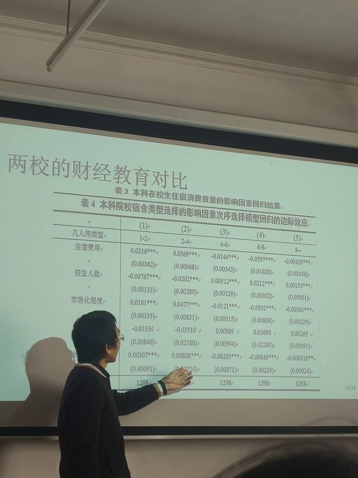 分享会伊始,柴国俊教授介绍了本次访学的加拿大高校经贸类专业,结合地图明确学校区位,梳理出其以“实用导向”为核心、覆盖多门分层课程、强调“理论+实践”融合的课程体系。随后,他通过课程表对比、数据分析等方式,从课程结构、教学时长、实践安排等维度对照两校财经教育模式,总结差异并给出教学改革启示:建议强化“自学+实习”环节,借鉴校每学分“12课时课堂教学+12课时课前预习+12课时课后巩固”的时间分配模式,优化学生学业投入结构,提升课程学习深度与实践衔接度。