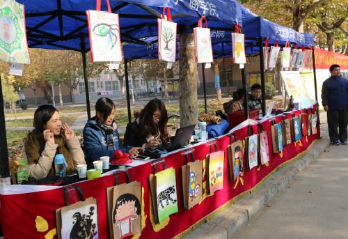 本次活动历时六天,分为初赛,复赛,决赛三个环节,共有100余份参选作品。大赛秉承“绿色校园,环保先行”的理念,以“创意环保”为主题。同学们充分发挥创新能力,在环保袋上设计并画出环保时尚的logo标志。经过筛选,确定11份作品进入决赛,并在韶华路进行宣传投票。最终,14级国贸1班侯思思同学获得一等奖。11月20日,商学院将部分优秀作品在小广场前进行展览宣传。