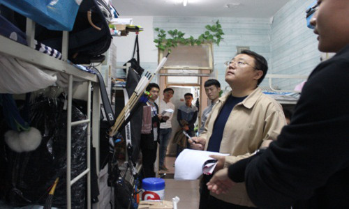检查过程中,学院领导和老师们深入学生宿舍内部,和同学们面对面进行交谈、讨论对宿舍卫生的看法。董爱民对优秀宿舍和个人进行了口头表扬,同时提醒个别内务有不足的同学及时改正。最后,董爱民对商学院学生宿舍总体卫生表示满意,并提倡同学们积极营造一个温馨的宿舍环境,为开展学习活动提供良好的后勤保障。