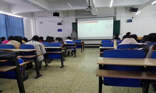 施威以我国电子商务发展的良好势头为切入点,通过生动典型的案例向同学们讲解了分析市场需求,找准产品市场定位的方法;同时他对电商行业局限性、未来发展前景以及创新思维三个方面进行了详细介绍。随后,王小平对电子商务系的办学特色、人才培养模式作了简要的介绍,鼓励同学们积极参加操作实践活动,将课堂所学与实践活动有机结合。在自由发言环节,学生们就自己的疑惑向施威请教,精彩的回答赢得了台下的阵阵掌声。