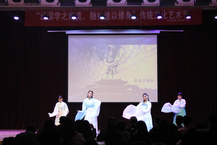 4月11日晚,商学院大学生活动中心3号厅举办了“通国学之洵美,融礼德以修身”传统文化艺术节活动。商学院党委副书记董爱民、团委书记康晗、优秀教师代表王丁以及300余名同学参加了本次活动。