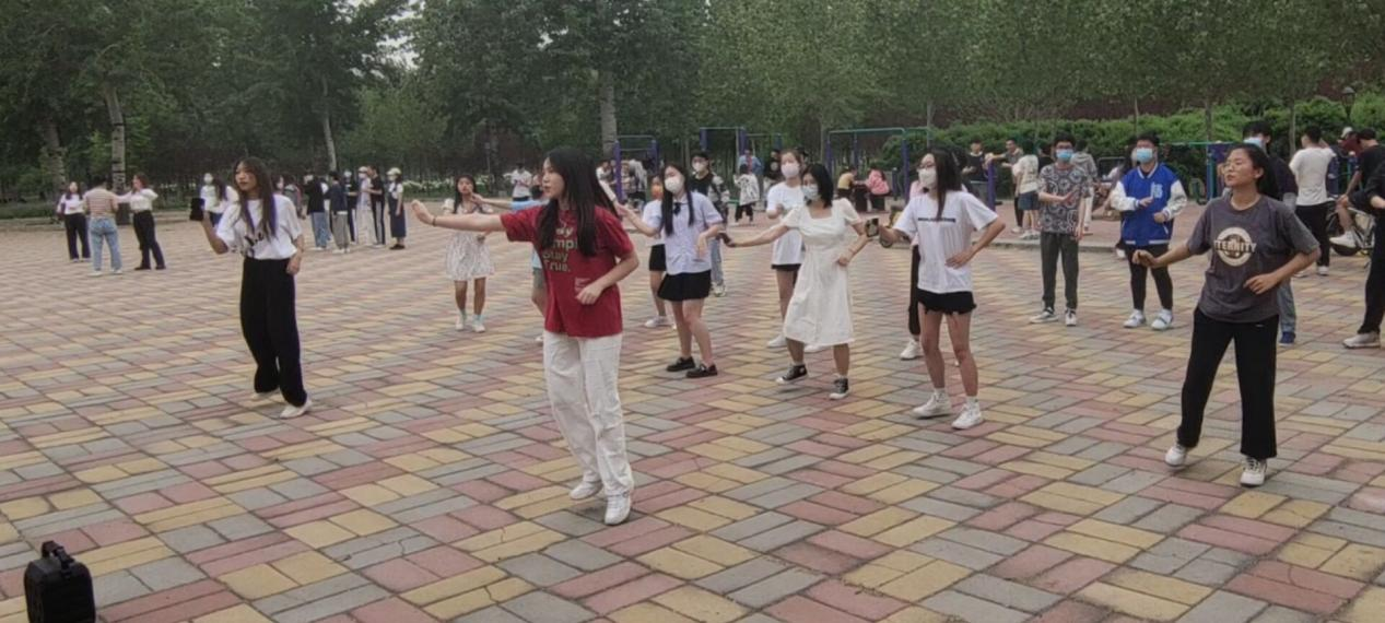 首先,《开心往前飞》音乐响起,拉开了本次活动序幕。三班同学由范成林和徐佳慧同学领舞,她们先带领同学们学习舞蹈动作,经过一番练习,同学们跟随音乐节奏一起舞蹈,接着四班同学在孙毓琳和王梦然同学的带领下一起跳起了《狼的诱惑》。现场活力四射,一片欢声笑语。