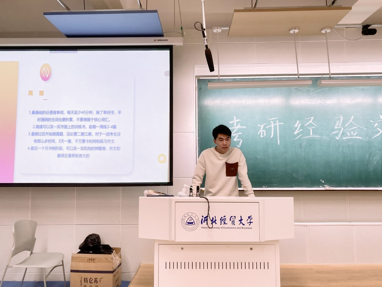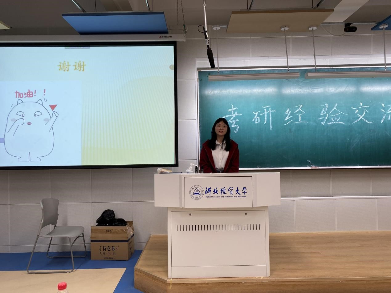 四、李子涵从考研原因、考研现状、考研的规划与考研小建议四个方面向同学们分享了考研经验,并现身说法用自己的亲身经历诠释了“越努力,越幸运”这句话。