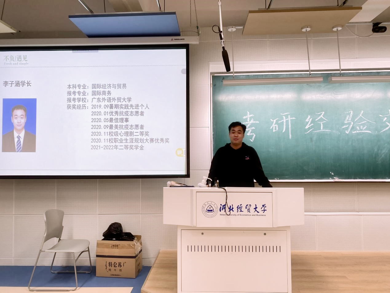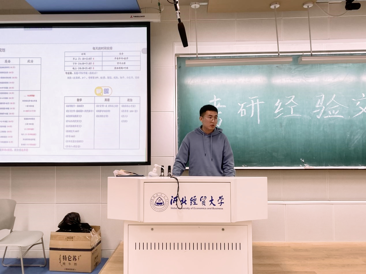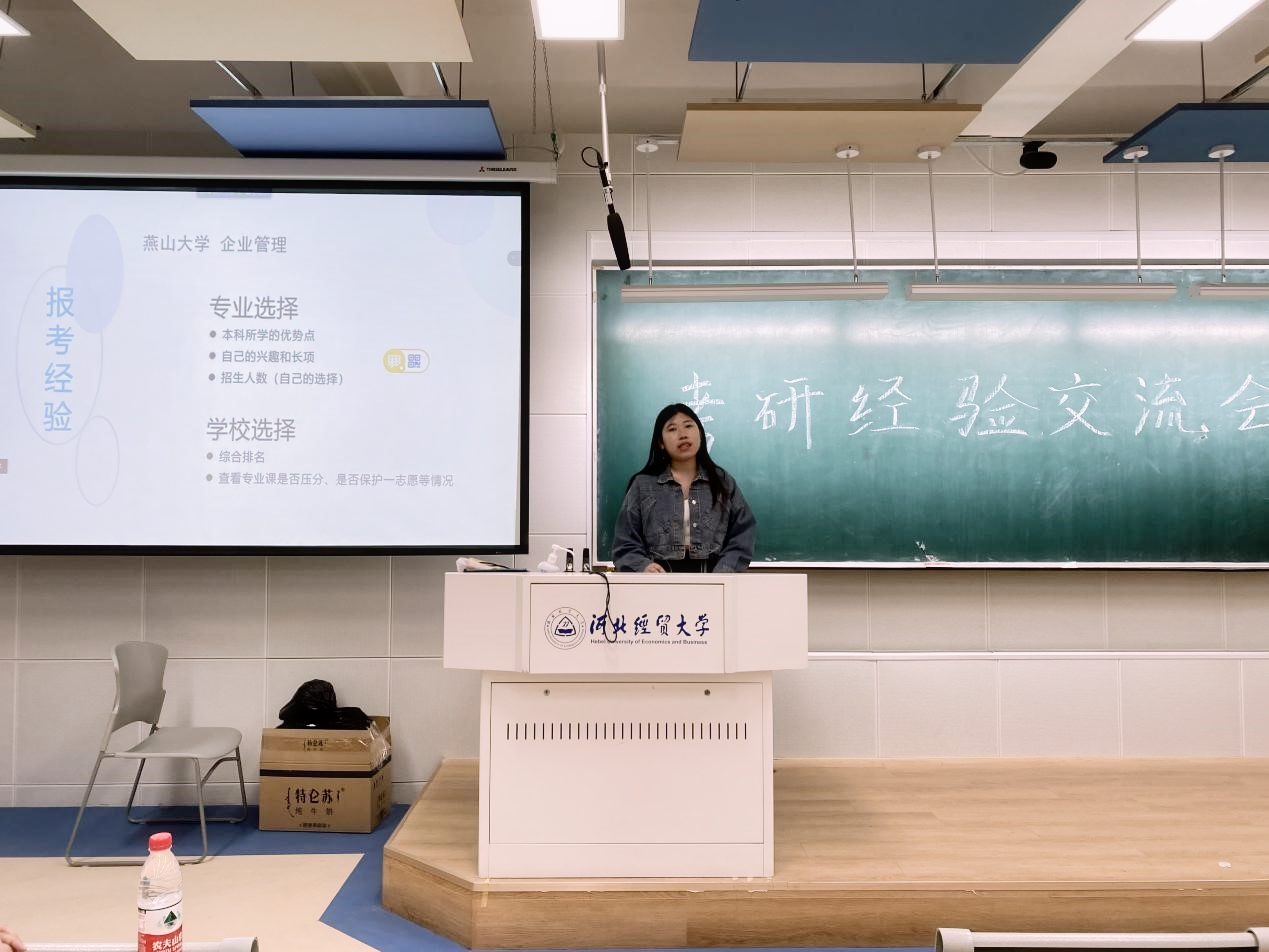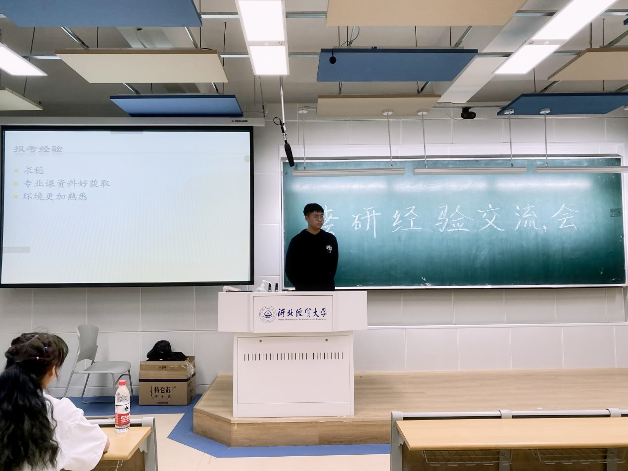 4月16日晚,商学院学习实践部于北三教A201举办以“研途星光璀璨,不负此路少年”为主题的考研经验交流会。会议以线上线下相结合的方式召开。会议由王稳、张朝钢主持,团委书记路荣、十位优秀毕业生及商学院各级学生参加。