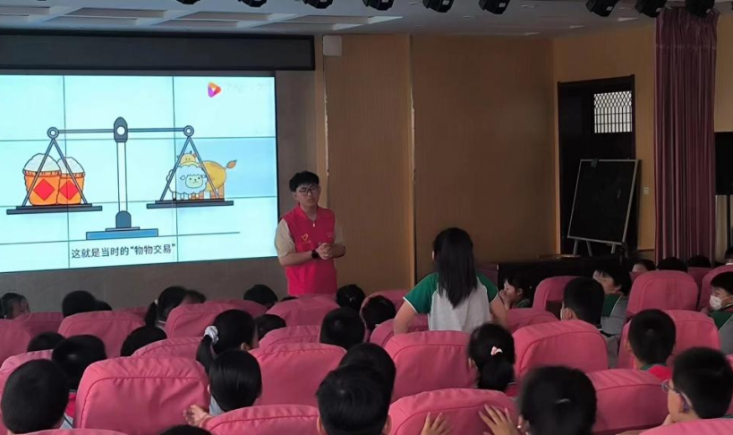 2023年5月23日,商学院青年志愿者服务大队带领大学生宣讲团队来到石家庄市金地小学,为同学们普及关于“货币的演变”的财商知识。