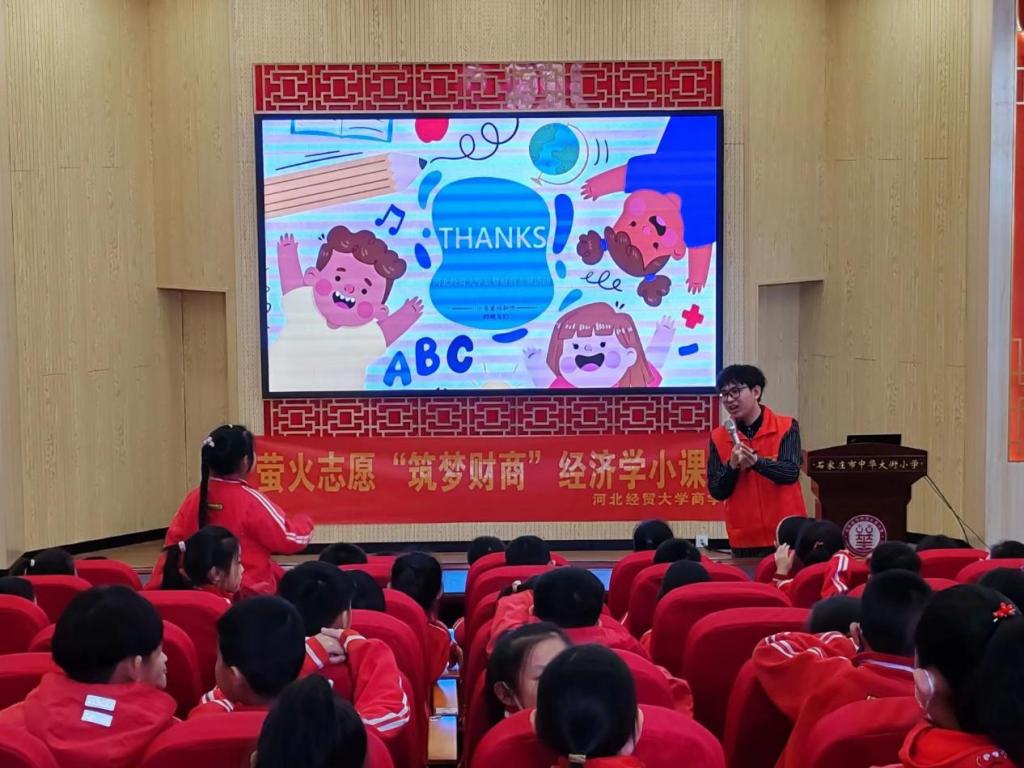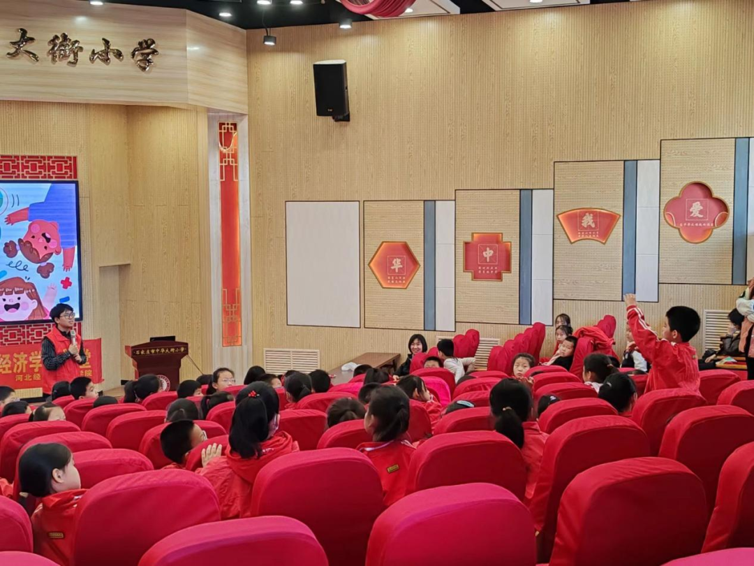 商学院党委副书记侯彦利、团委书记路荣以及8名大学生志愿者一同来到石家庄市中华大街小学,为三年级80余名小学生上了一堂与众不同的课。