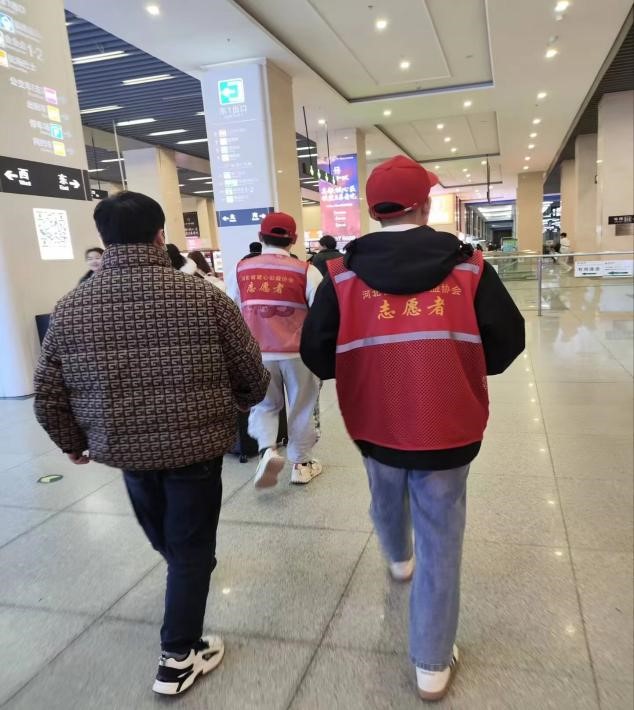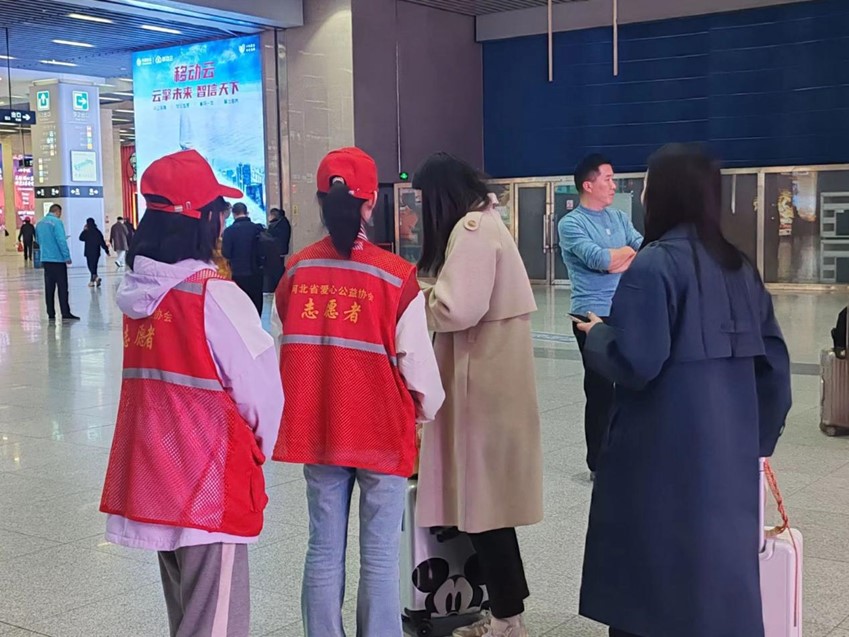 青年志愿者服务大队组织同学们在石家庄火车站进行志愿服务,该活动由两位青志干事带队,共14位青年志愿者参加。