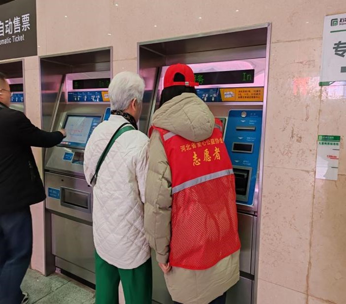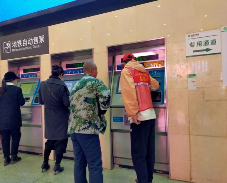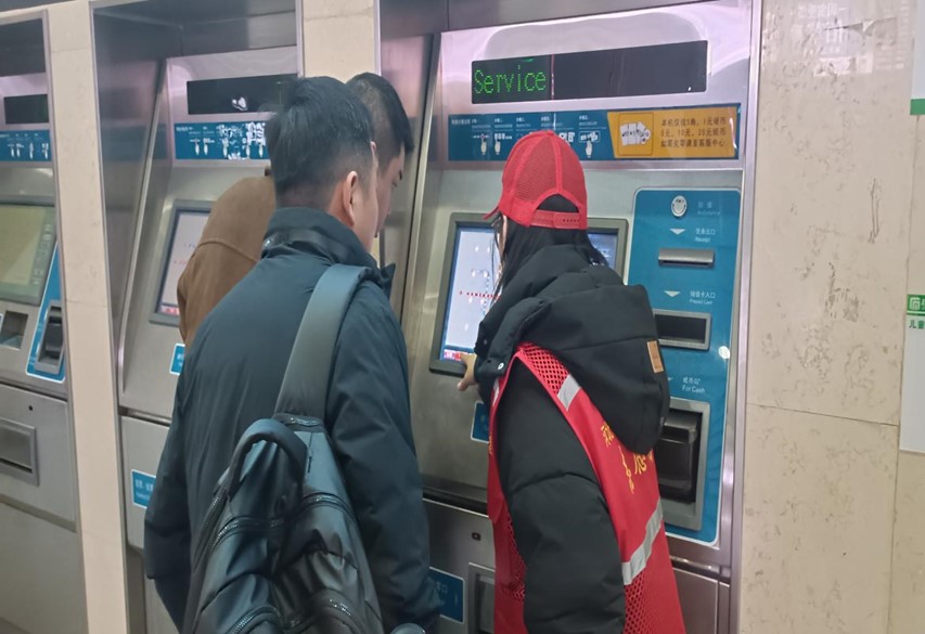 地铁票自动购票处、火车票售票处也都能看到青年志愿者们帮助旅客们解决问题的身影。他们帮助旅客查看路线,购买车票,充分弘扬了“奉献、友爱、互助、进步”的志愿精神。