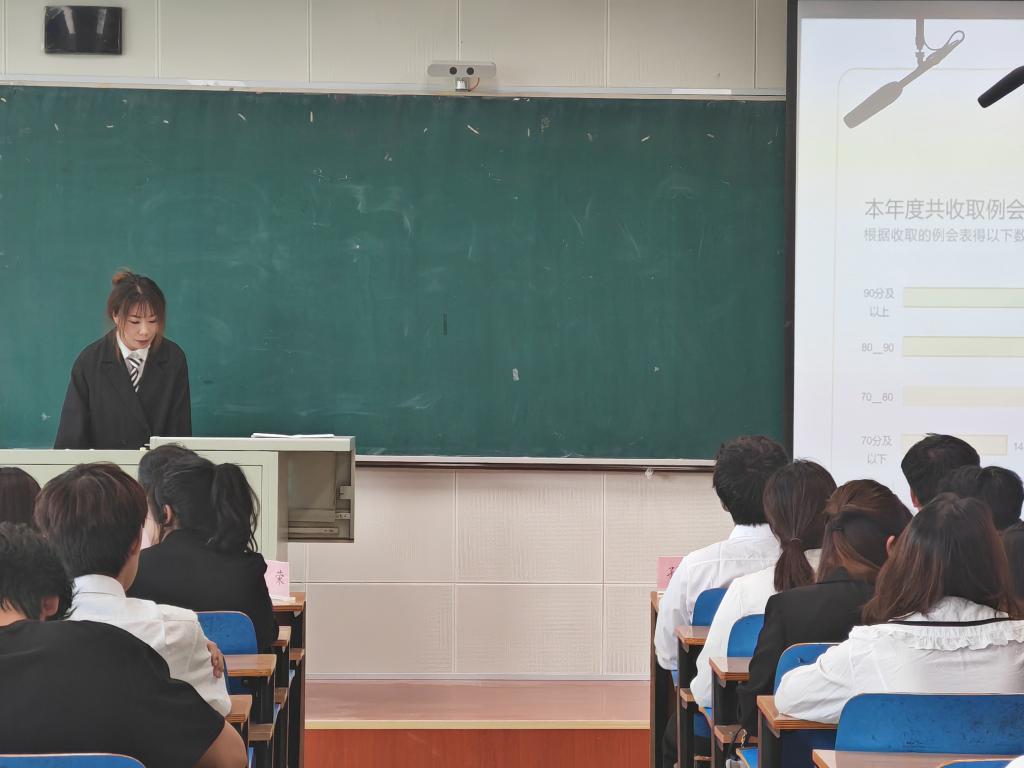 然后,孙禄坤从部门活动总结、部门例会情况、部门评级、优秀部门奖励以及个人与部门违规情况五个方面进行部门情况工作总结,他希望各部门以后都能继续总结工作经验,加强团队建设,优化工作流程,携手共进,为学院的发展再创佳绩。