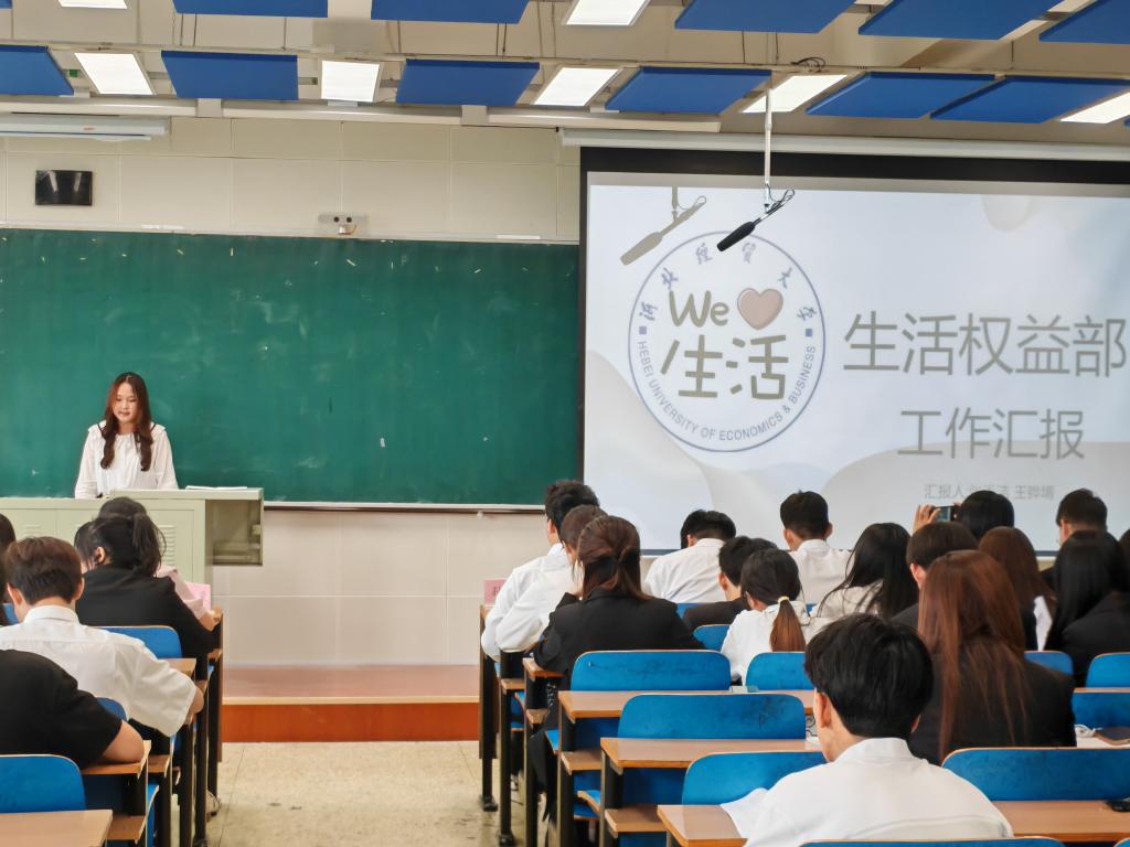 杨岳林从生活文明建设、实践活动、文体活动、心理健康、学习发展五个方面对学生会工作进行总结,并提出工作中存在的问题,希望各位学生干部、干事能够及时改正,为建成协作统一、有思想、有能力、高效率的学生工作组织贡献自己的力量。