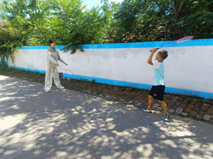 志愿者们带领小朋友在活动期间携手制作生动有趣的打卡记录表,鼓励他们在假期中坚持健康运动的习惯。通过跑步、跳绳和打羽毛球等运动增强体质,充分享受运动带来的快乐,让智慧与健康同行。