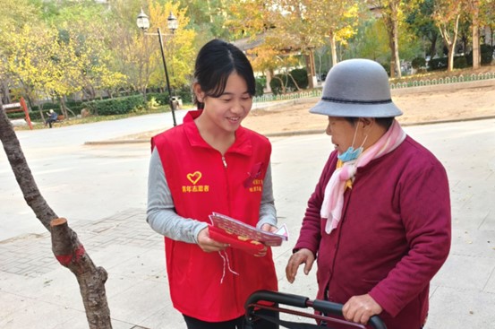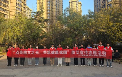 的志愿者们在团委副书记吴子雨老师的带领下走进星河御城社区开展“点亮防艾之光,共筑健康家园”防艾宣传志愿活动。
