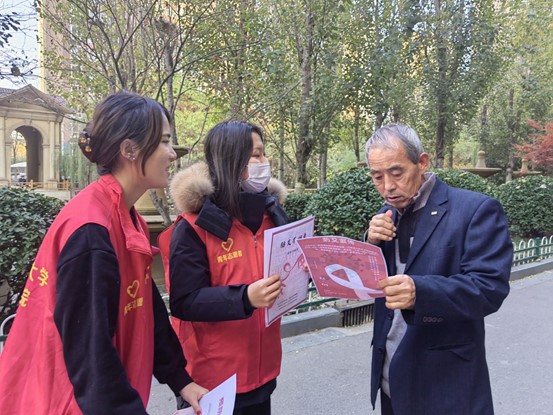 活动开始前,志愿者们在社区工作人员的讲解下折好红丝带,并佩戴于胸前。随后,志愿者们通过精心设计的海报,向居民详细讲解了艾滋病的传播途径和预防措施,鼓励大家将防艾知识带回回家中。本着“防艾不妨爱”的主旨,志愿者们鼓励大家在做好自身防范和家人防范的同时,正视、理解、关心艾滋病病毒感染者及艾滋病病人。