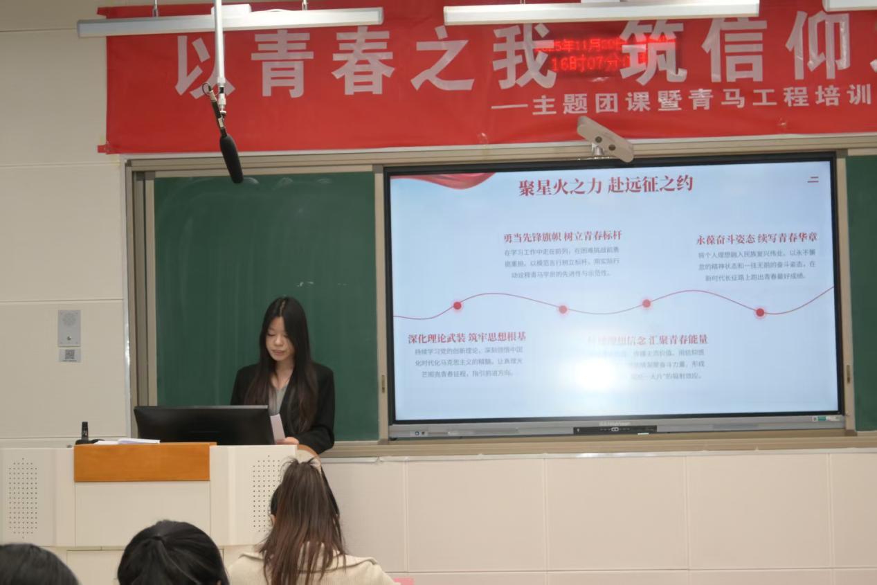 为引导青年学生坚定理想信念、筑牢信仰根基,韩国色情片 于11月20日下午16:00在北三教B107教室成功开展了“以青春之我,筑信仰之基”主题团课暨青马工程培训班开班仪式,本次团课团委书记吴子雨参加。大一各班团干部及部分团员积极参与,现场气氛庄重而热烈。