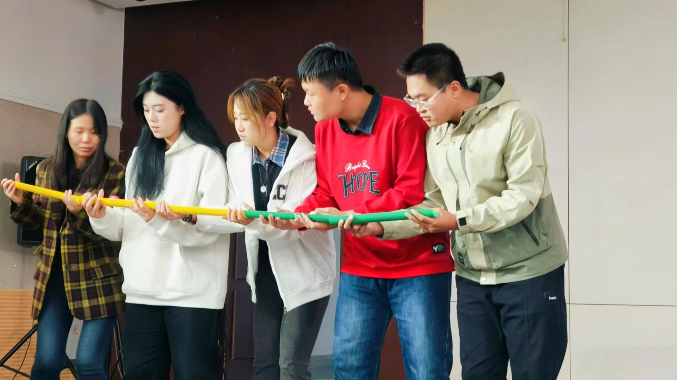 为了让班导师和同学们快速熟悉,这次“青春有约”还精心设计了“破冰”游戏。每位导师和自己所带班级的学生组成“战队”,在“传球接力”游戏中密切合作、培养默契。3位班导师带领三支队伍各出奇招,迈动灵活的脚步,专注手上的平衡,迅速点燃现场气氛。