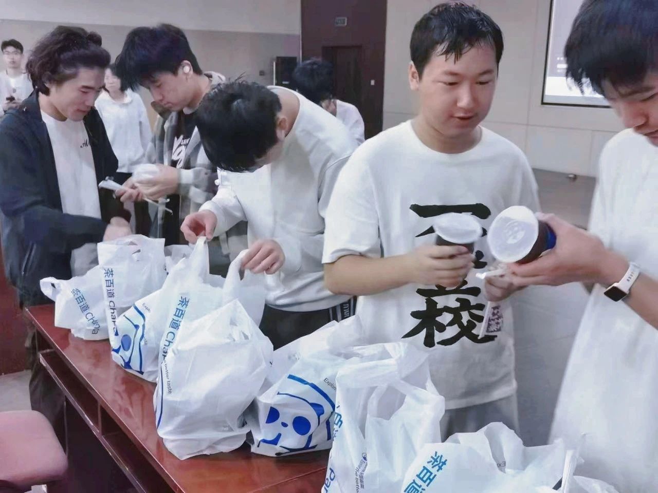 祖国的辉煌,我们的荣耀。基础部为观影同学准备了暖暖的奶茶,同学们一起用满满的热情向祖国表达爱意。