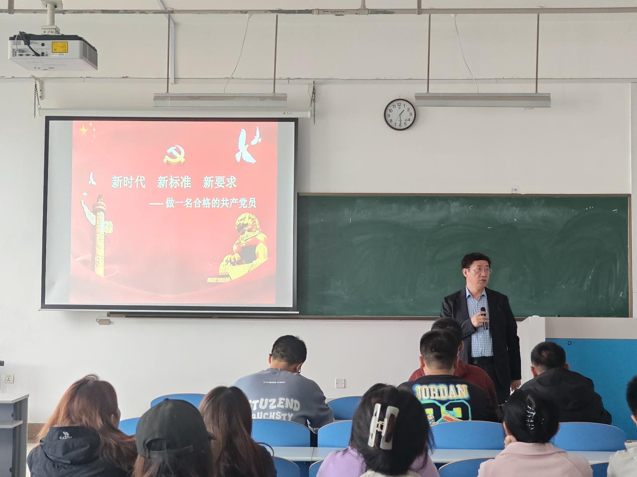 10月15日,基础部组织员马晓发以“新时代 新标准 新要求——做一名合格的共产党员”为主题,强调党员要发挥先锋模范作用,主动担当作为,在生活细节上也要体现先进性,让党员身份看得见,以实际行动彰显党员的责任与风貌。