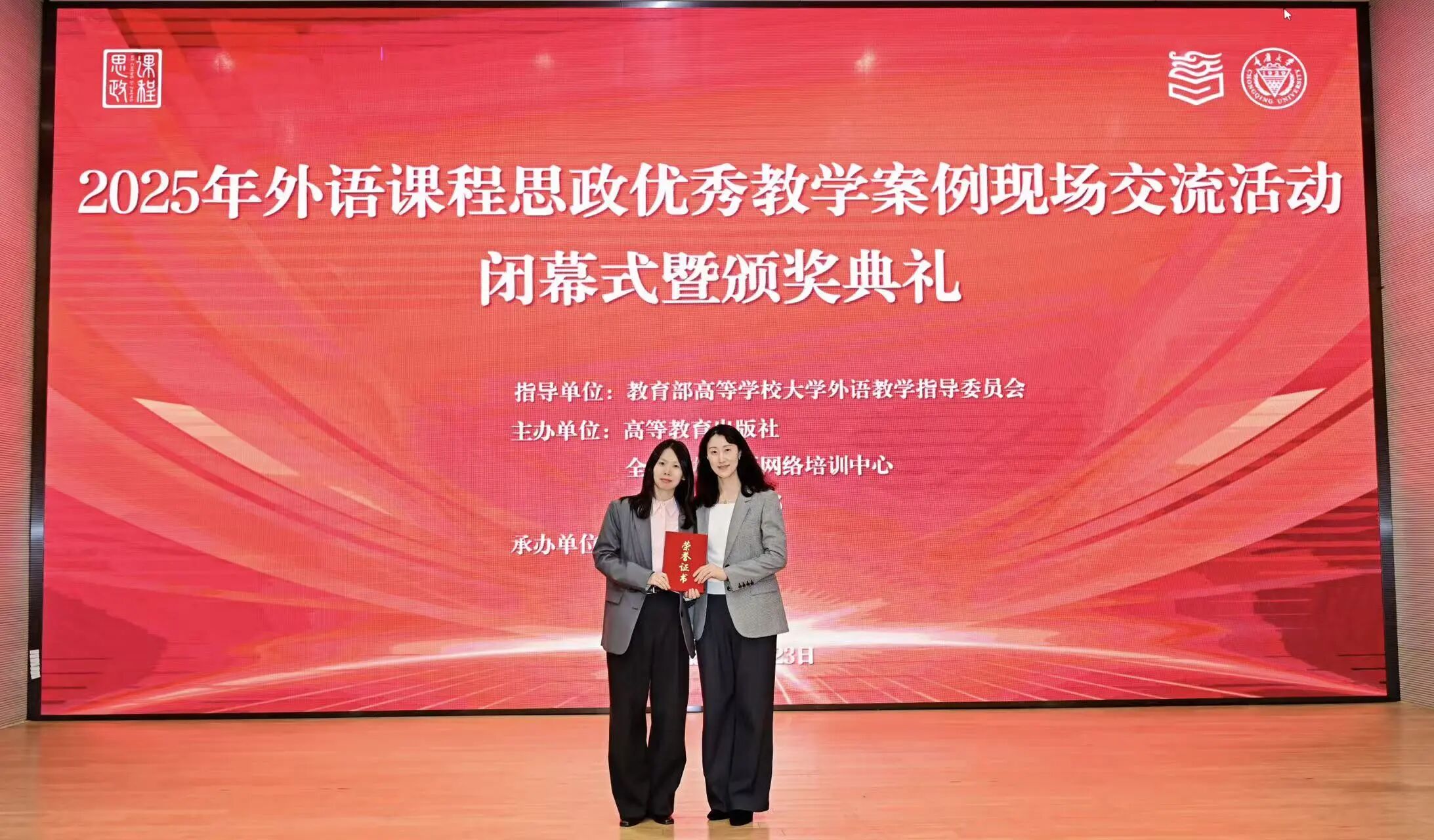 11月21日至23日,“2025年外语课程思政优秀教学案例现场交流活动暨全国教学比赛决赛”在重庆大学举行。基础部教师在此次国家级赛事中表现突出,斩获佳绩。英语系教师张墨和籍婷婷组成的教学团队荣获本科英语专业组全国特等奖第一名。这是我校在外语类国家级教学赛事中迄今取得的最好成绩,标志着学校外语课程思政教学实现了新突破。公共外语教研中心教师刘妍、任九菊、赵丽、李雪、佟丽莉组成的教学团队荣获本科大学英语组全国二等奖。两组教学团队在初赛中分别荣获本科英语专业组和本科大学英语组省级特等奖,晋级全国决赛。